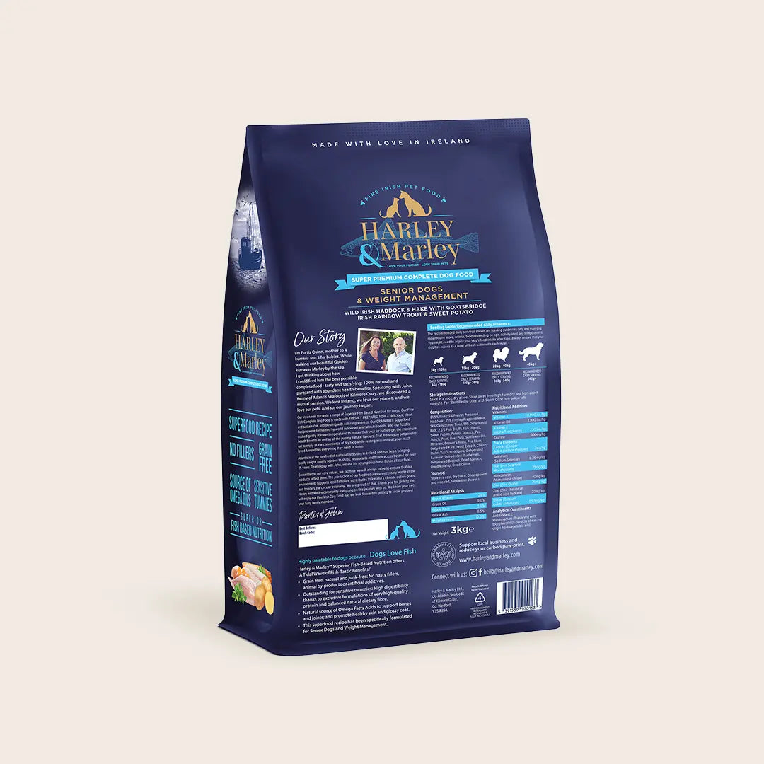Introducing a complete fish cuisine specially formulated for senior dogs that is grain-free and super premium. Our superfood recipes were created by world-renowned animal nutritionists, and our food is cooked at lower temperatures to retain maximum natural goodness. The specialist recipe has been designed to help senior dogs with weight management. Our food is a natural source of Omega oils that support healthy bones and joints, promote healthy skin, and give your dog a glossy coat. Our food is free of junk and nasty fillers, and is packed with fresh, delicious, clean, and sustainable fish from the fishermen at Kilmore Quay. Perfect for sensitive tummies & dogs with allergies too ! The abundant functional health benefits of our food are derived from its natural goodness, and they help your pet live a long, happy, and healthy life!